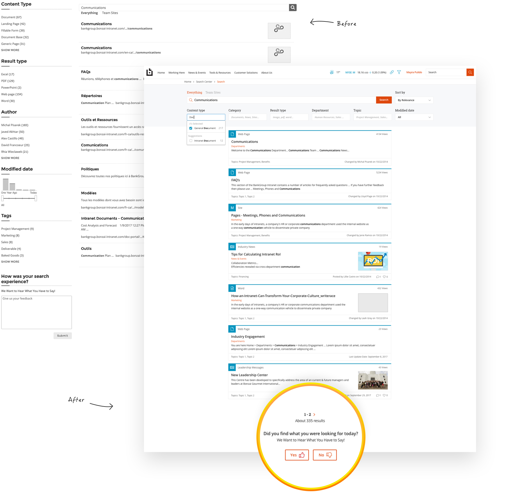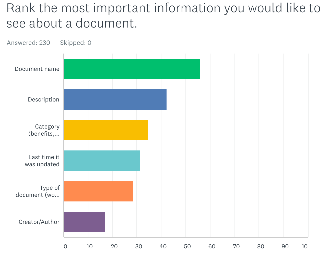 Survey analysis on what users look for when searching for documents or people.